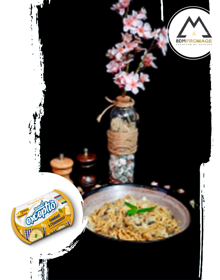 Plongez dans une assiette de pur réconfort avec cette Pasta Alfredo ❤ au poulet, revisitée avec la richesse du fromage 🧀 fondu Exceptio à l’Emmental. Une sauce crémeuse et onctueuse qui sublime🌸 chaque bouchée pour un moment gourmand et convivial !