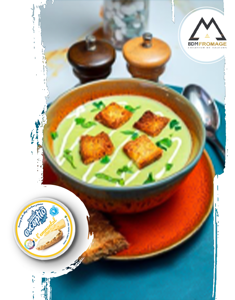 Crémeuse et réconfortante, cette soupe aux légumes est l’option parfaite pour se réchauffer tout en ❤savourant des saveurs équilibrées et délicatement relevées par le fromage 🧀 fondu allégé Exceptio Light à l’Emmental. Un plat sain et gourmand 🌸 qui allie la légèreté du fromage fondu à la douceur des légumes.